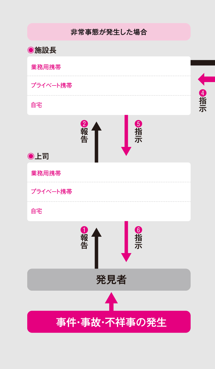 ◦責任上位の人は、代表番号に施設及びご利用者状況を伝言に残す。
